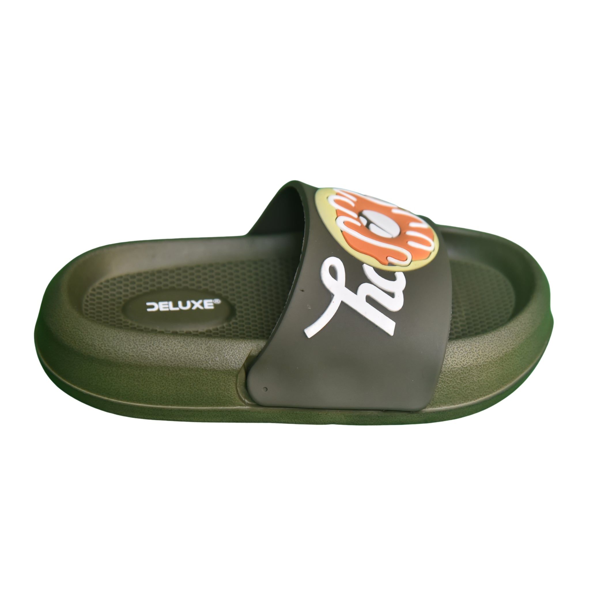 Sweeten your child’s steps with our Kids' Donut Delight Slides in a fun, Green "Happy Day" theme! Designed for little feet and big smiles, these soft, lightweight slippers are perfect for everyday comfort whether at home, at play, or on the go.