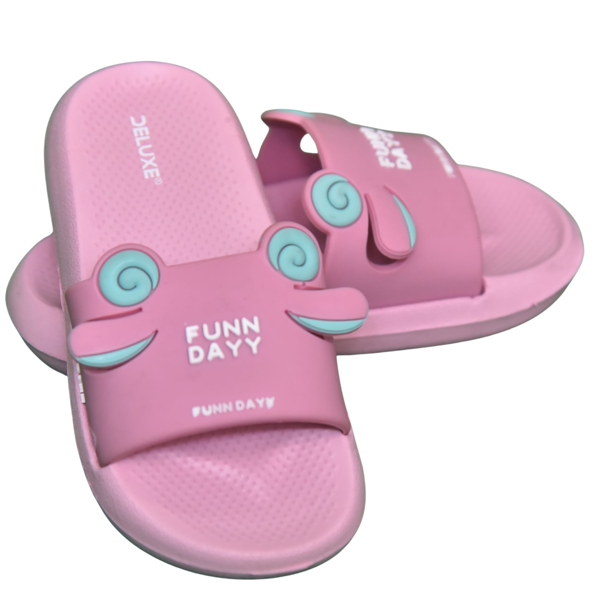 Step into fun with our FUNN DAYY Cartoon Slides – designed especially for kids who love color, comfort, and character! Featuring adorable 3D swirl ears and a cheerful pink color combo, these lightweight slippers are perfect for everyday wear, both indoors and outdoors.